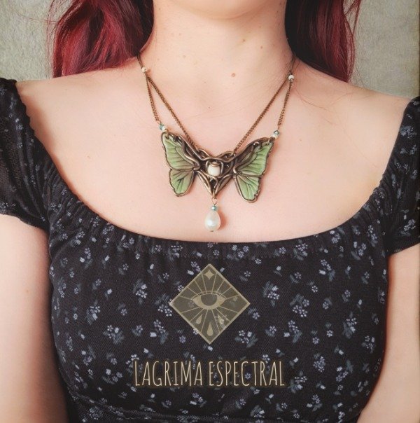 Collar modelado y pintado a mano en arcilla polimerica, diseño único, con cuentas de vidrio, cadena de metal aleacion hierro